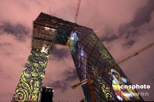 图:巨型投影扮靓央视新址 体育精神鼓舞中国加油 (4)