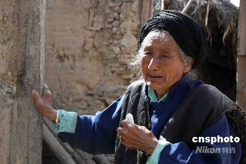 6月2日,86岁的羌族老人王天秀在倒塌的房屋前哭泣。中新社发 曾宪平 摄