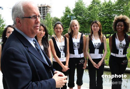 图为加拿大列治文市市长会见新丝路北美模特大赛选手。中新社发 钱兴强 摄