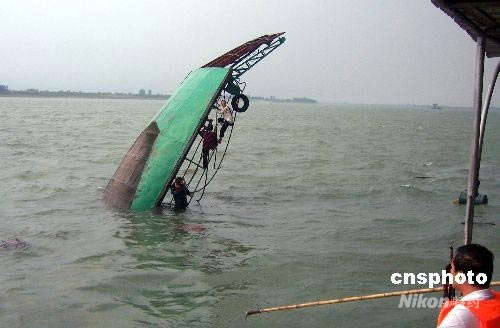 图:湖北枝江遭风灾两船翻沉7人失踪(2)