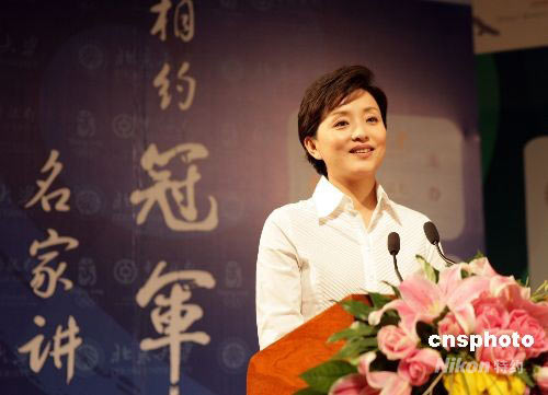 6月3日晚,阳光文化基金会董事局主席、资深媒体人杨澜女士做客“相约冠军·名家讲坛”第15讲,并以“简单的优雅:人生是道选择题”为题发表了精彩演讲。由北京大学和中国银行联袂打造的“相约冠军·名家讲坛”是2008奥运·冠军论坛的系列活动,努力还原“冠军”背后的社会因素,剖析“冠军”的心路历程,为渴望成为冠军的年轻人留下一笔心灵财富。中新社发 赵隽 摄