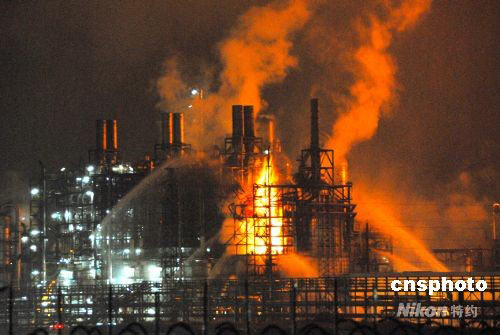 图:广东茂名乙烯裂解装置遭雷击起火
