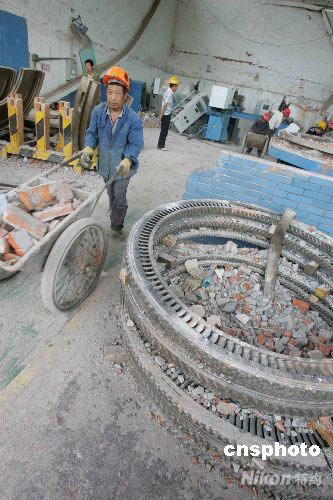 图:东方汽轮机厂清理灾后厂房准备重建(2)