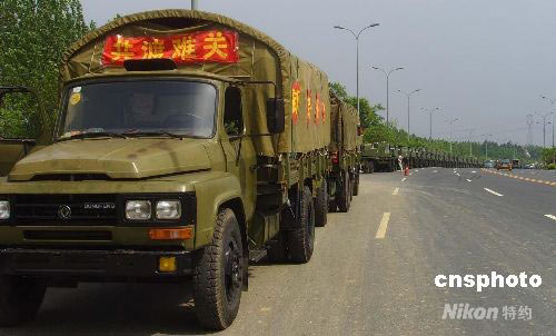 唐家山堰塞湖对绵阳市境内的兰成渝输油管道大动脉形成重大威胁,6月4日,成都军区一舟桥部队的600余名官兵已迅速抵达江油市九岭镇,对该输油管道进行抢险保通任务。中新社发 霍潺 摄