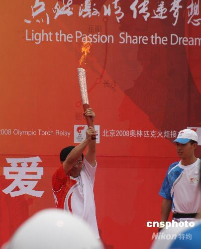 图为高举“祥云”火炬的火炬手。 中新社发 郭国权 摄