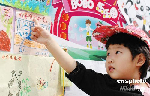 北京小朋友用图画表达自己对大熊猫的喜爱。中新社发 魏玮 摄