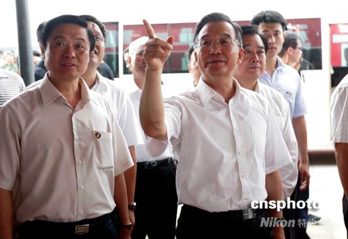 6月6日,中国国务院总理温家宝到四川绵阳涪城区居民疏散安置点视察慰问。中新社发 杜洋 摄