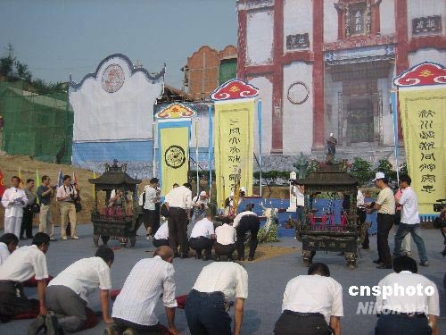 6月6日,屈原故里湖北秭归县举办了中国秭归端午文化节主题活动,分端午祭祀活动、端午传统龙舟表演和端午诗会、勤廉歌会四个篇章。图为在屈原祠前举办盛大祭祀活动,悼念伟大的爱国诗人屈原和四川汶川地震中遇难同胞。中新社发 刘良伟 摄