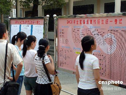 湖北宜昌市各大高考考场布置妥当,考生和家长纷纷到考场“踩点”。中新社发 刘君凤 摄