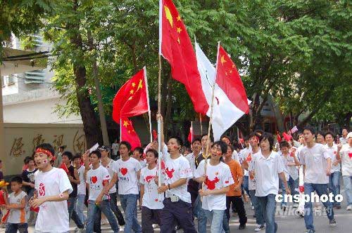 南宁市民热情迎接奥运圣火 追随着火炬一路前行