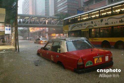 六月七日,香港遭遇黑色暴雨,众多店铺及住户进水,街道变成一片泽国。中新社发 武仲林 摄