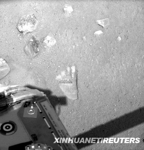 “凤凰”号探测项目经理戴维·斯潘塞6月1日说,机械臂与火星的第一次接触为之后的采集土壤和向其他科学仪器传送土壤样品做好了准备。由于机械臂形状特殊,其在火星留下的“第一痕”类似于人类脚印。 新华社/路透
