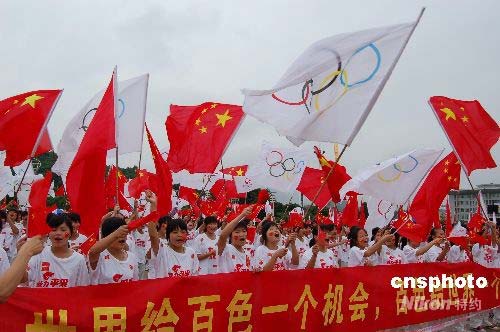 6月8日上午,奥运圣火在革命老区广西百色市平果县传递,当地民众热情迎接圣火。百色是邓小平军事生涯起点的英雄城市,一九二九年邓小平在百色领导发动了著名的百色起义。