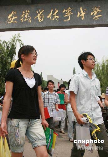 6月7日,安徽休宁中学考点的考生表情轻松地走出考场。中新社发 方也广德 摄
