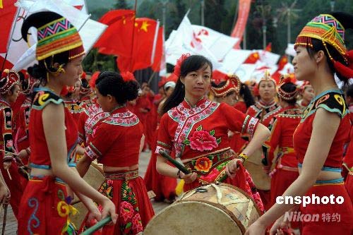 图:云南各民族群众欢庆奥运圣火传递 (3)