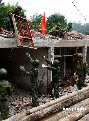 图:中国空降兵四川震区帮民众重建家园(2)