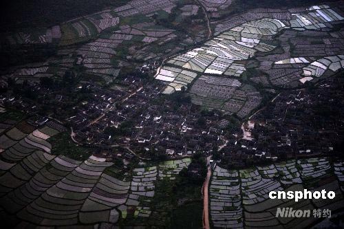 6月10日,奥运圣火将在云南丽江进行传递。6月9日,从飞机上俯瞰丽江风光如画。 中新社发 廖攀 摄