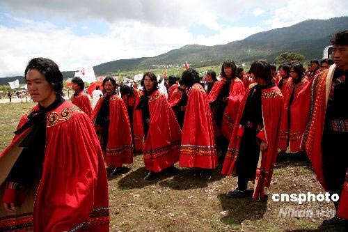 图:彝族同胞结队观看奥运圣火丽江传递