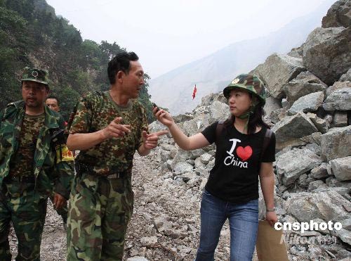 参加搜救的四川省军区达州陆军预备役炮兵旅旅长杨喜灿,一边在途中向记者介绍官兵多天来艰辛,一边赶往指挥部汇报。中新社发 贾国荣 摄