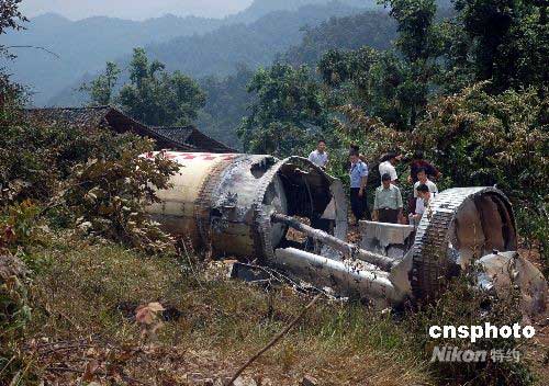 6月10日,贵州省黔东南苗族侗族自治州镇远县江古乡,火箭助推器残骸。6月9日20时15分,我国西昌卫星发射中心“长征三号乙”运载火箭,成功将中国首颗广播电视直播卫星“中星9号”卫星送入太空。火箭升空数分钟后,4个火箭助推器成功分离,安全坠下黔东南州镇远、岑巩两县境内预定落区。中新社发 吴如雄 摄