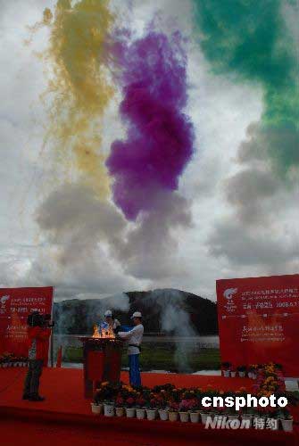 6月11日,奥运圣火在云南香格里拉传递,圣火传递结束仪式在普达措国家公园属都湖边举行,现场的美景和跳跃的圣火一起描绘了一幅“天人合一”的绝色画面。中新社发 石雨 摄