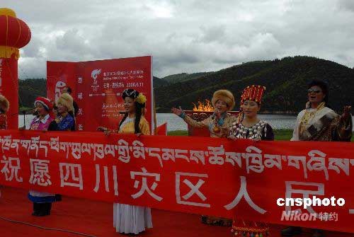 奥运圣火在云南香格里拉传递,在结束仪式现场,全场共同高歌《一个妈妈的女儿》,为四川灾区人民祝福。 中新社发 石雨 摄