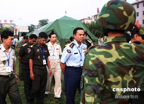 参加东盟与中日韩(10+3)武装部队国际救灾研讨会的防务官员和救灾部队指挥员及东盟秘书处官员,会议期间参观了解放军白求恩军医学院野外救治演练。中新社发 宋吉河 摄