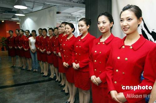 6月12日,奥运会场馆颁奖仪式礼仪团队的15位姑娘在北京歌华大厦培训基地进行颁奖演练。此次培训为期两周,参加人员是国家体育馆颁奖仪式专业志愿者,15位姑娘是北京逸仙专修学院航空服务专业的学生。此次培训主要是通过颁奖仪式流程,加强志愿者的现场感觉和实战经验。中新社发 杜洋 摄