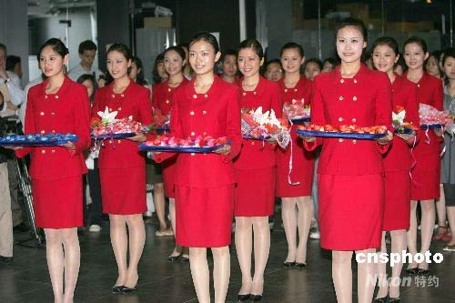 图:15位准空姐北京演练奥运颁奖仪式 (4)