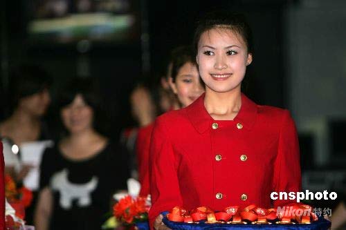 图:15位准空姐北京演练奥运颁奖仪式 (5)