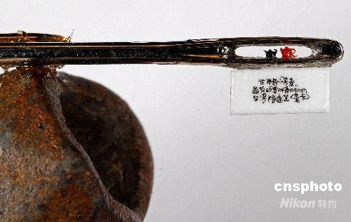 图:台湾微雕大师雕出能穿过针孔的茶壶