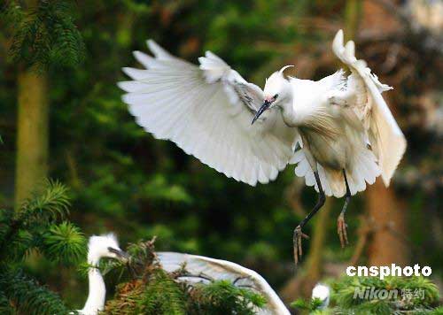 “两只黄鹂鸣翠柳,一行白鹭上青天”,近日,在福安市湾坞乡郭厝塘村林间,繁衍栖息着数千只白鹭、苍鹭。它们日出而翔、日落而息,场面蔚为壮观。成年白鹭或四处觅食、哺育后代,或绕枝翔集、起舞蹁跹,雏鹭们或蜷缩鸟巢、嗷嗷待哺,或羽翼渐丰、展翅欲飞,吸引了众多观鸟者和摄影爱好者。中新社发 王志凌 摄