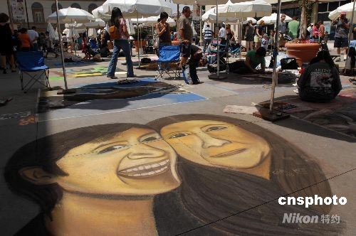 当地时间六月十五日,第十六届帕萨迪纳粉笔画艺术节在加州帕萨迪纳市街头举行。这个号称“世界上规模最大”的街头绘画艺术节,吸引约六百名绘画艺术家和爱好者,消耗约两万五千支彩色粉笔,数百幅作品占据两个街区的人行道。中新社发 张炜 摄
