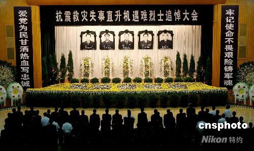 6月16日,在四川汶川大地震中执行救援任务失事直升机组遇难烈士追悼大会在成都举行,中共中央总书记、国家主席、中央军委主席胡锦涛,中央军委、总参谋部、总政治部等分别向邱光华、李月、王怀远、陈林、张鹏五位烈士敬献花圈。四川省党、政、军等社会各界前来吊唁。