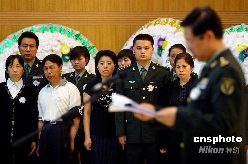 失事直升机烈士追悼大会举行 胡锦涛送花圈