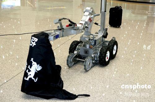 图为演练过程中,北京海关利用机器人排除险情。 中新社发 雷虹 摄