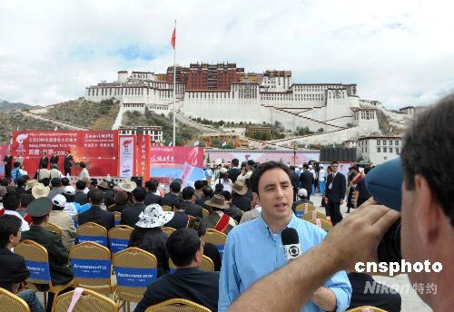 境外电视记者现场进行报道。 中新社发 廖攀 摄