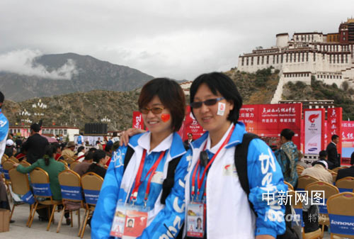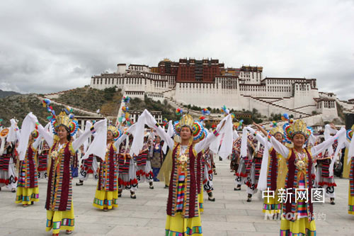 图:藏族民众布达拉宫广场欢庆奥运火炬传递