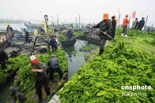 青岛及时打捞绿藻清洁近海海域保证奥帆赛场清洁