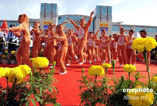 图:格尔木孩童扮成藏羚羊欢庆奥运圣火传递