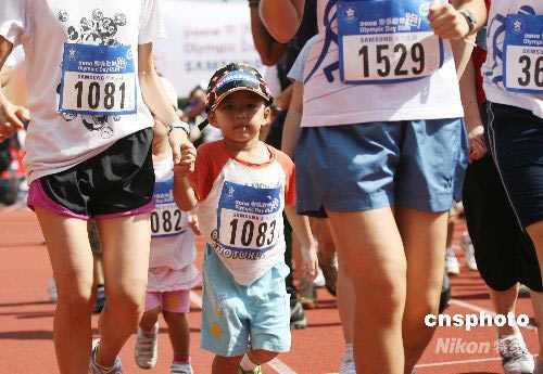 图为出席欢乐跑活动的小选手。 中新社发 武仲林 摄