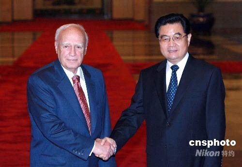 胡锦涛主席欢迎希腊总统帕普利亚斯访华