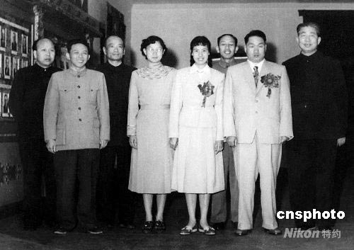 资料图为1960年9月,大连市委市政府领导祝贺毛岸青、邵华喜结良缘。中新社 摄