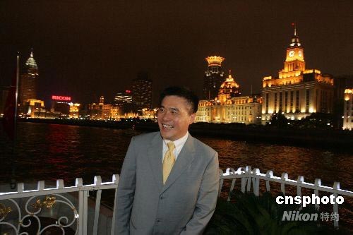 6月24日晚,在上海访问的台北市长郝龙斌,乘游船夜游黄浦江,观赏两岸美景。中新社发 潘索菲 摄