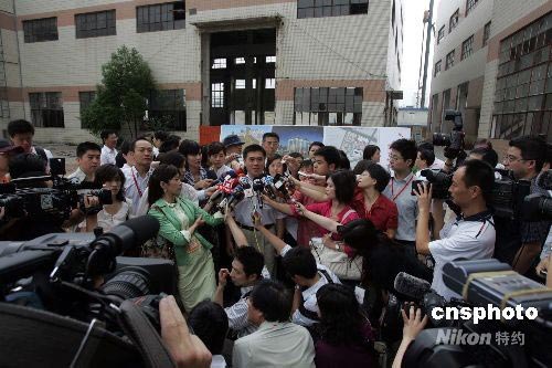 郝龙斌在考察后,向记者表示,非常满意上海世博局对台北“两项成果”的安排。中新社发 潘索菲 摄