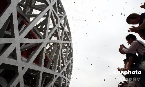 6月28日,2008年北京奥运会主体育场国家体育场(“鸟巢”)落成典礼在北京举行。国家体育场“鸟巢”系第29届夏季奥运会主体育场,位于奥林匹克公园内,占地21.4公顷,建筑面积25.8万平方米,南北长333米,东西宽298米,高68米,赛时坐席9.1万个,是目前世界上跨度最大的钢结构体育建筑之一。中新社发 盛佳鹏 摄