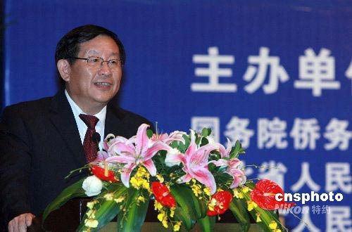 6月28日,“2008年华侨华人创业发展洽谈会”在湖北省武汉市开幕,全国政协副主席、致公党中央主席、中国科技部部长万钢在开幕式上作主旨讲话。中新社发 廖文静 摄