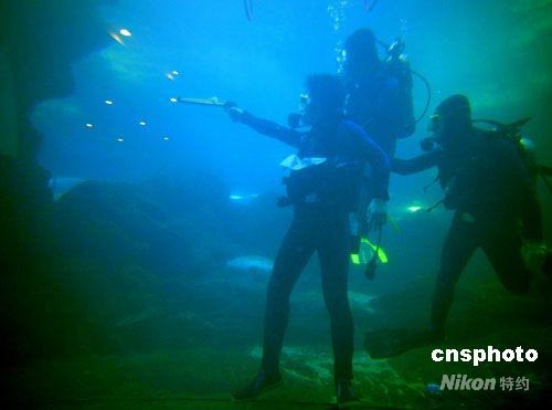 图为选手在水下进行射击比赛。中新社发 曲连遵 摄