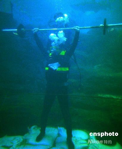 图为选手在水下进行举重比赛。中新社发 曲连遵 摄