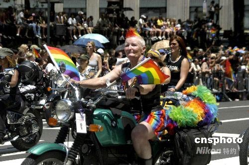 6月29日,同性恋大游行在纽约曼哈顿第五大道举行。参加者尽情展示奇装异服以及想象力,劲歌热舞,希望引起社会对同性恋的更多关注。中新社发 魏晞 摄